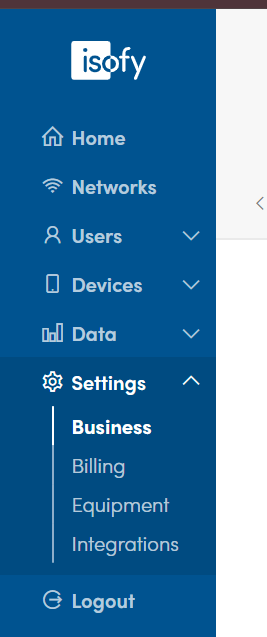 In the dashboard, navigate to the Settings menu on the left panel and select Business.