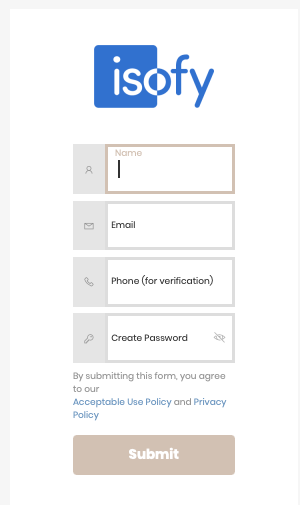 - Enter your information (Name, Email Address, Phone Number, and your Password). Be sure to provide a mobile number that can receive SMS text messages for verification.