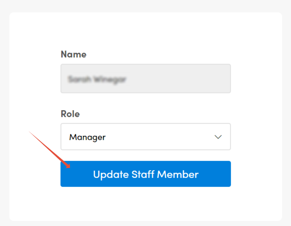 Once you have selected the new role, click the Update Staff Member button to confirm the change.