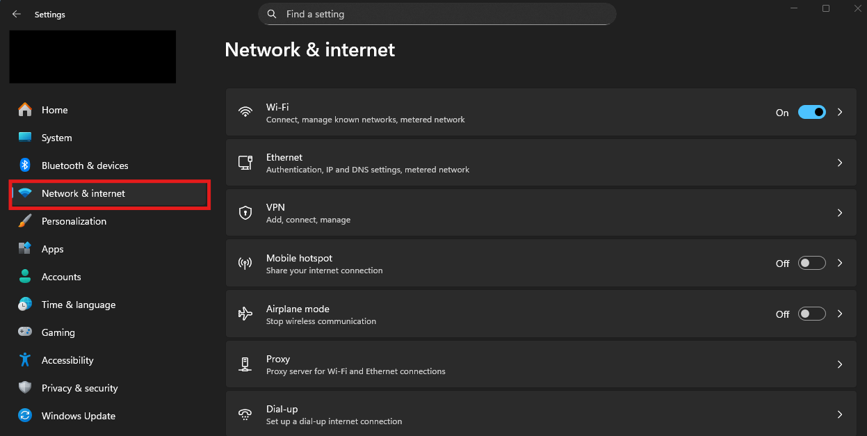 - If you are connected via Wi-Fi, click on "Wi-Fi" in the left sidebar.