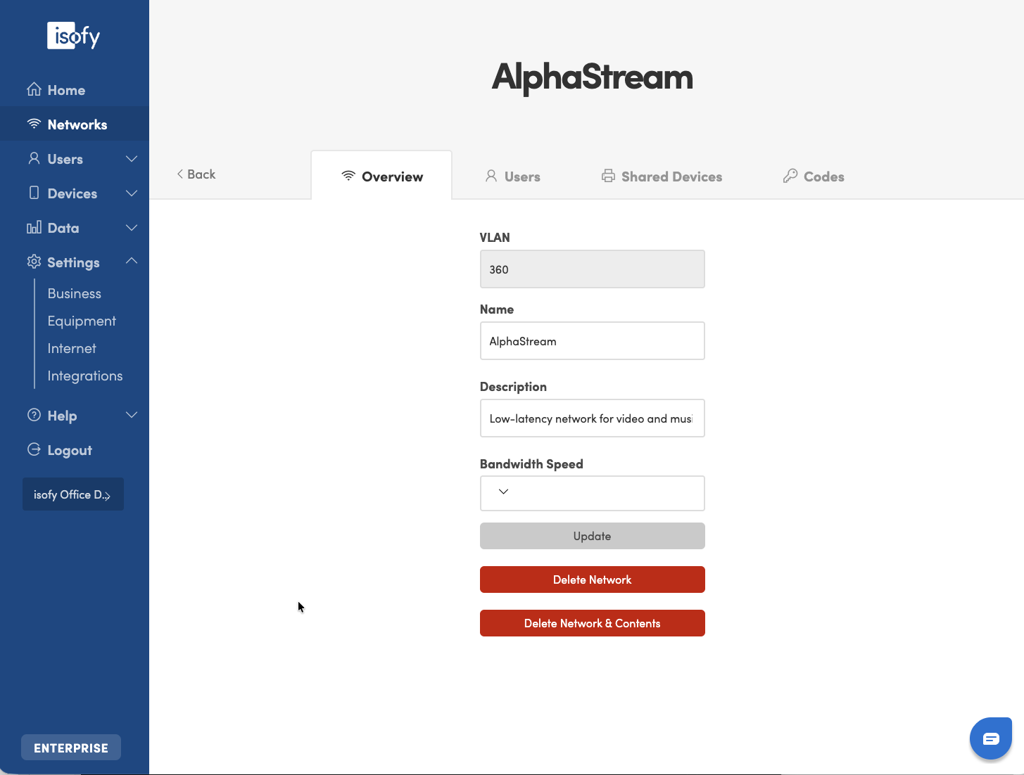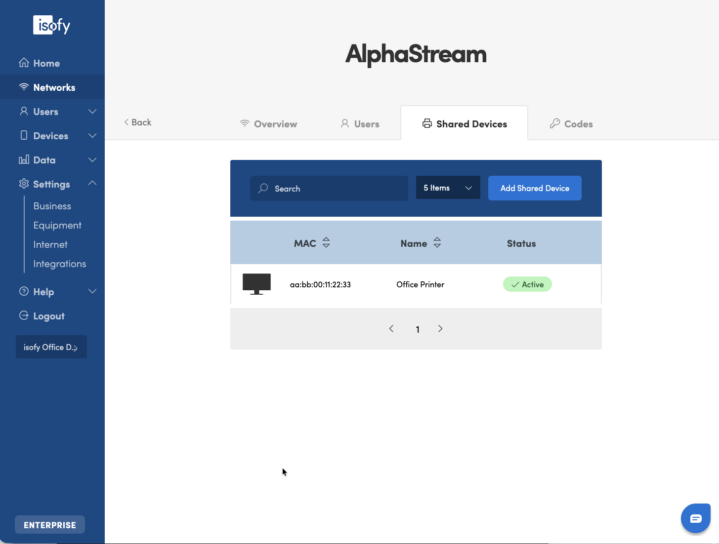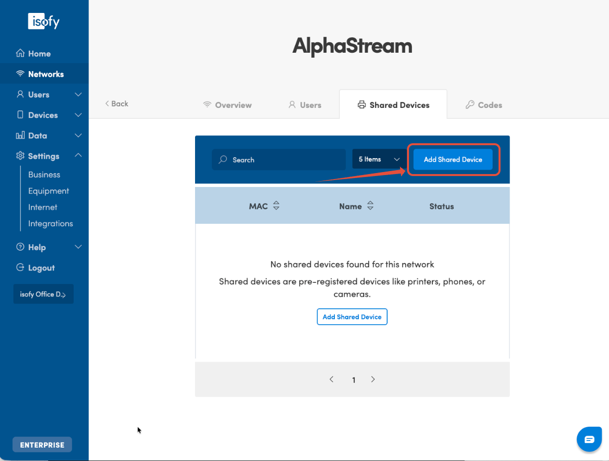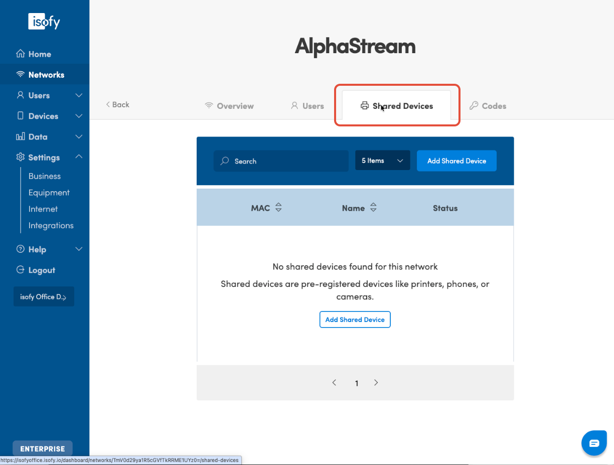 You can register devices that belong to the network (company) instead of a specific user. This is useful when you have devices like printers, phones, speakers, or cameras that do not belong to one member but rather are used by a team or organization. Manage shared devices on the Network Detail page.