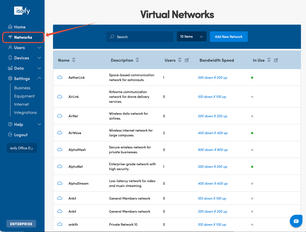 To add a shared device, first navigate to Networks on the left navigation menu.